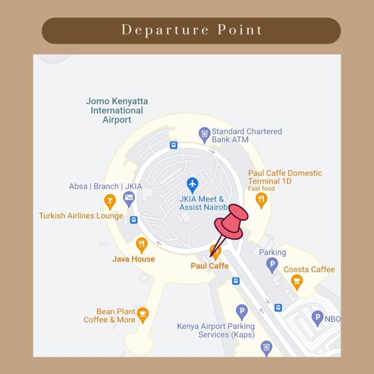 We depart from outside of Paul Caffe at Nairobi Airport.