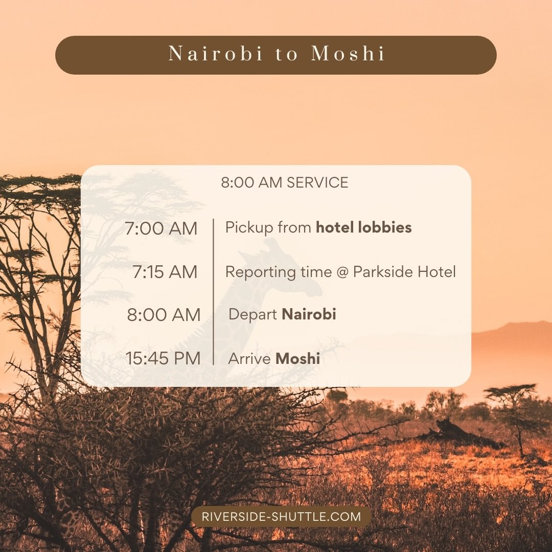 | Pick-up from hotels in Nairobi | 07:00 |